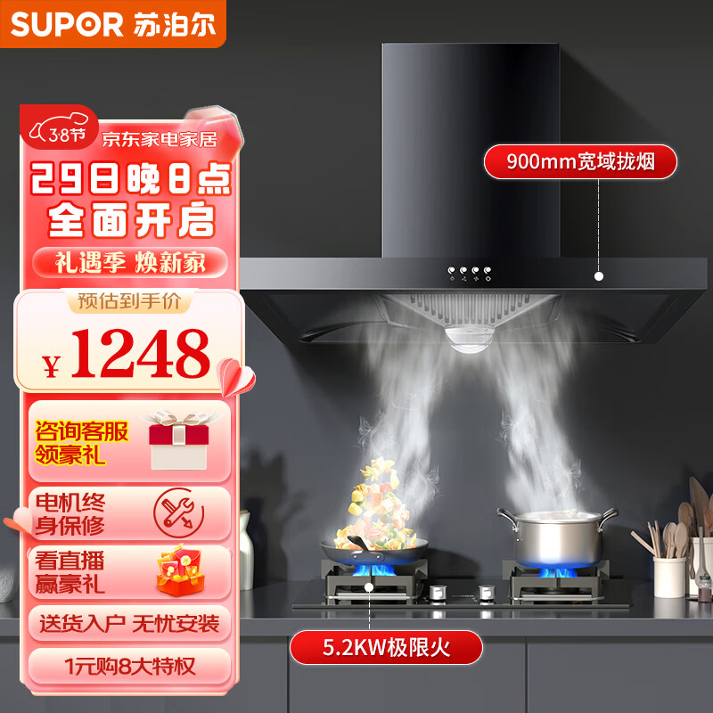 苏泊尔(SUPOR)排油烟机 宽域拢烟大吸力油烟机 家用易清洁欧式顶吸抽油烟机 吸油烟机燃气灶套装DT10+DB27液化气价格:1248.00元!