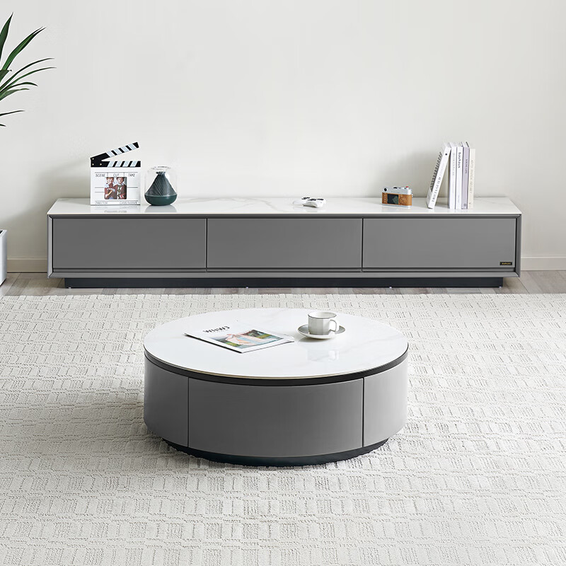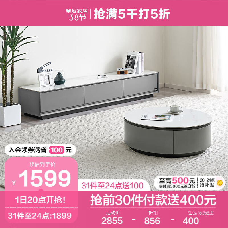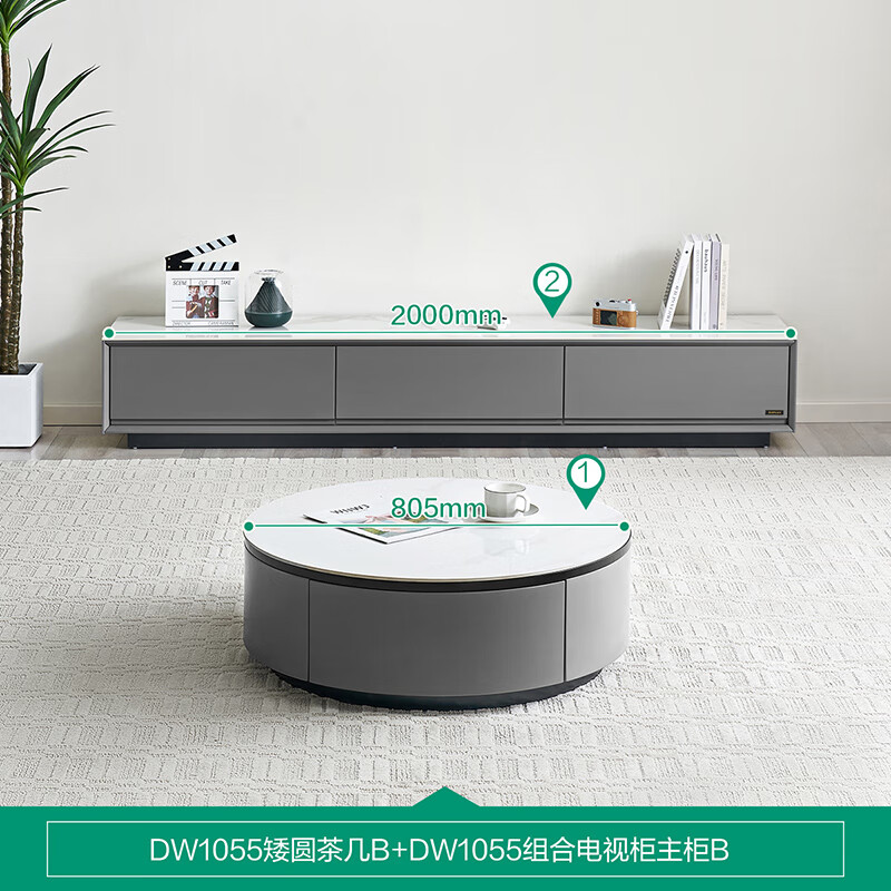 全友家居 岩板茶几电视柜组合现代简约客厅家用圆形茶几边几DW1055B价格:2855.71元!