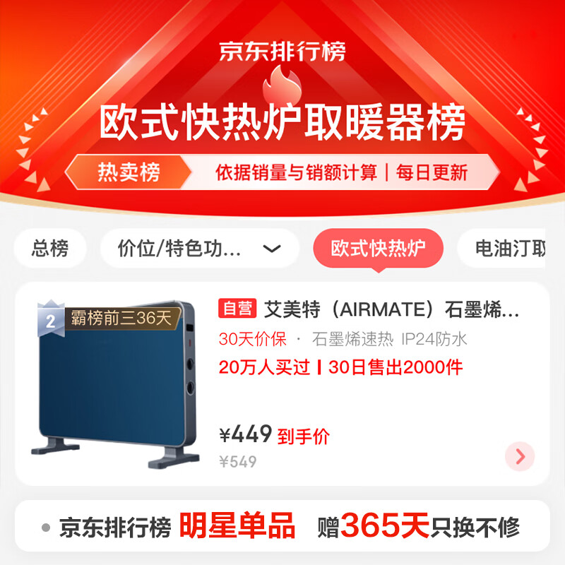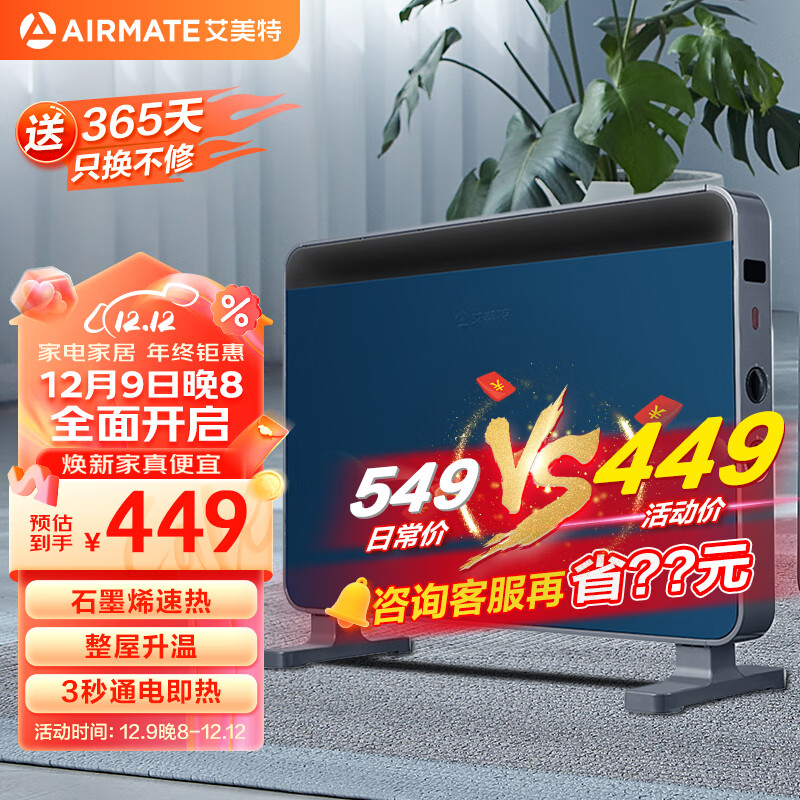 艾美特(AIRMATE)石墨烯取暖器/电暖器/电暖气片家用/暖风机/烤火炉 轻音节能防水速热智能温控欧式快热炉 HC20-K1价格:539.00元!