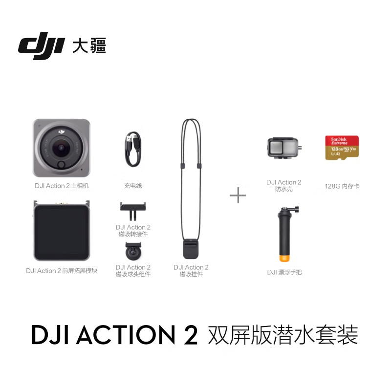 大疆 DJI Action 2 双屏版潜水套装 Osmo灵眸运动相机 水下摄影机 防水小型手持vlog全场景相机价格:2451.90元!