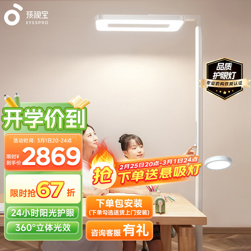 孩视宝立式护眼灯台灯学习专用全光谱卧室大路灯书房落地钢琴灯E5-75W-R价格:4299.00元!