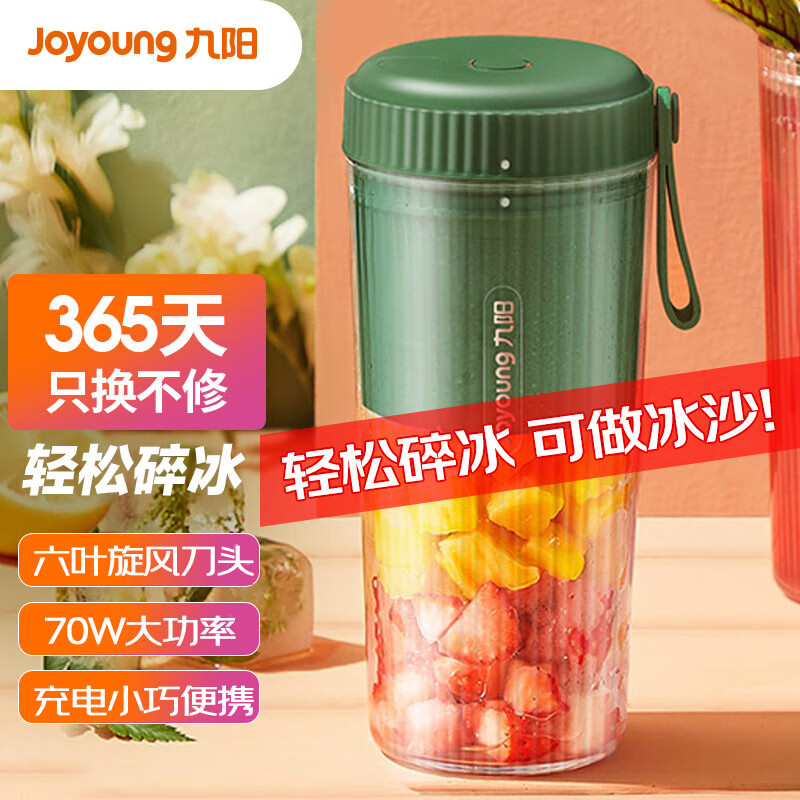 九阳 Joyoung 榨汁机便携式网红充电迷你无线果汁机榨汁杯料理机随行杯L3-LJ520(绿)价格:99.90元!