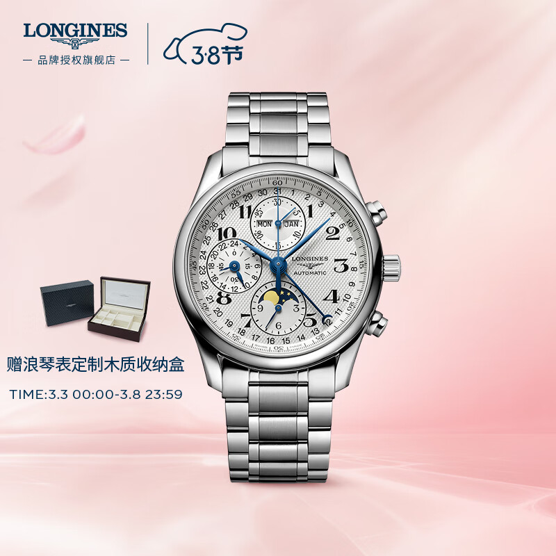 浪琴(LONGINES)瑞士手表 名匠系列 月相机械钢带男表 L26734786价格:29300.00元!