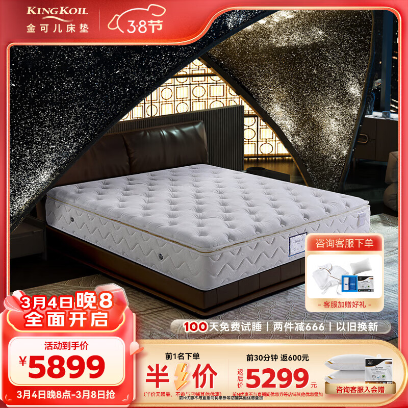 金可儿(Kingkoil)床垫威斯丁酒店款乳胶席梦思弹簧床垫软硬适中繁星A床垫1.8x2米价格:5999.00元!