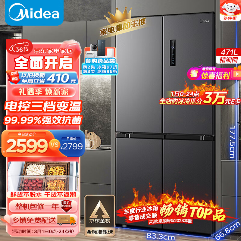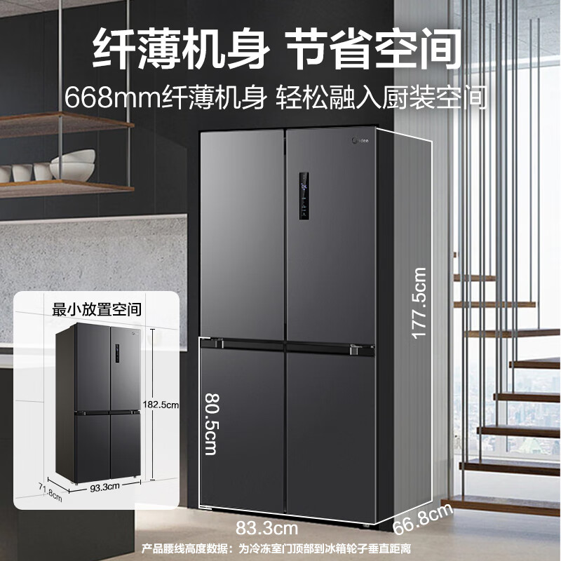 美的(Midea)慧鲜471升一级能效双变频十字双开四开多门风冷无霜家用大容量超薄电冰箱BCD-471WSPZM(E)价格:2959.00元!