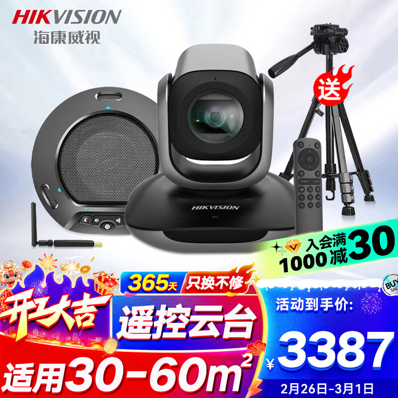 HIKVISION海康威视视频会议设备全套电脑摄像头套装自动变焦高清带麦克风扬声器直播无线会议系统解决方案价格:3417.00元!