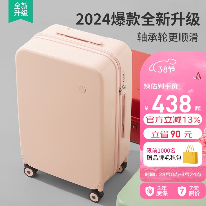 米熙高颜值拉杆箱子行李箱大容量旅行箱轴承轮密码箱26英寸淡山茱萸粉价格:529.00元!