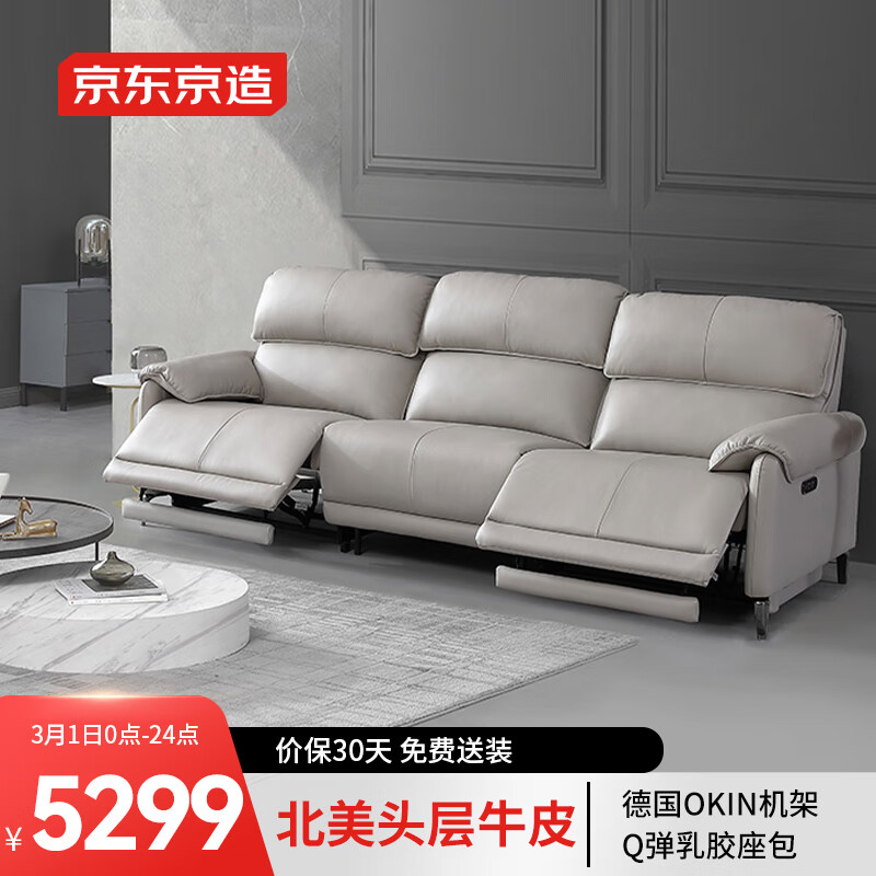 京东京造真皮沙发 头层牛皮|德国OKIN机架|双电动位 客厅大户型2.7m灰SE01价格:5799.00元!