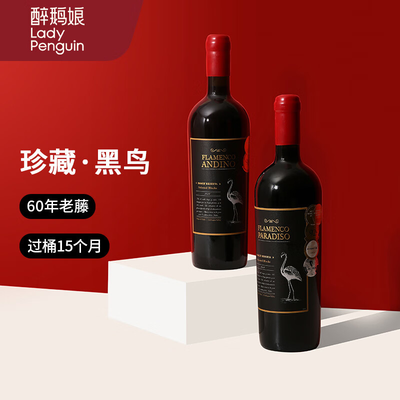 醉鹅娘 如饴火烈鸟酒系列黑鸟进口红酒 干红葡萄酒750ml双支装节日送礼价格:598.00元!