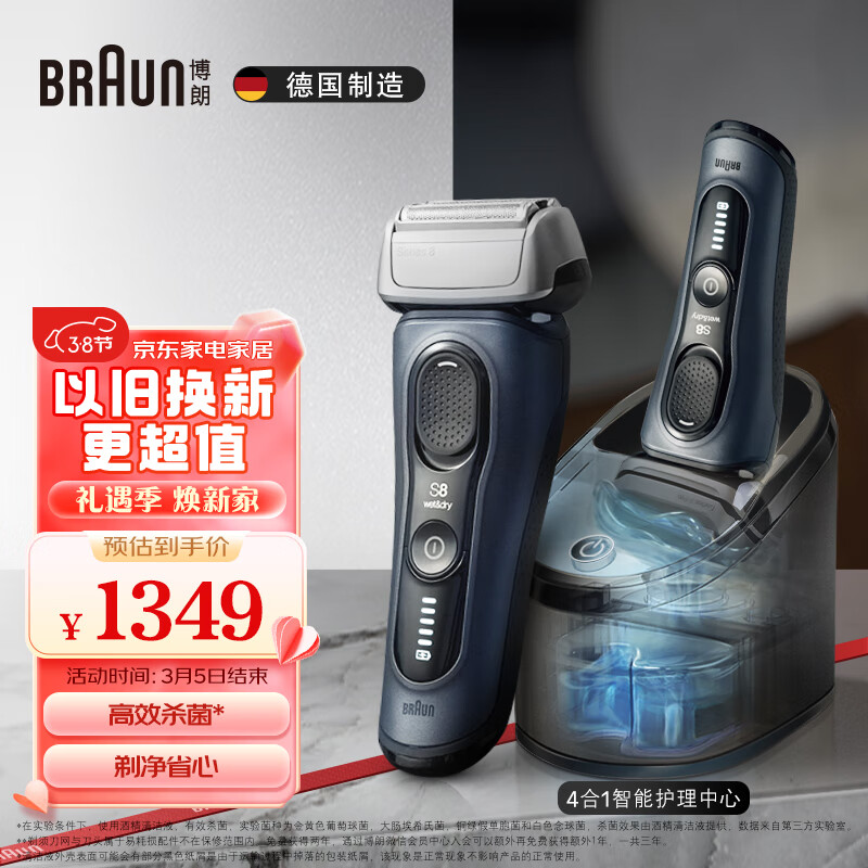 博朗(BRAUN)旗舰8系Pro清洁款电动剃须刀整机德国进口往复式剃须刀刮胡刀生日礼物 男送男友价格:1349.00元!