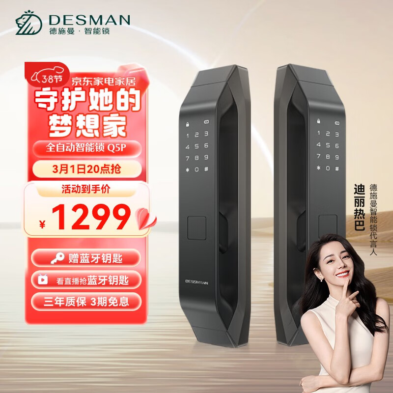 德施曼(DESMAN)全自动智能锁指纹锁密码锁防盗门锁 电子锁智能门锁 Q5P高端黑价格:1299.00元!