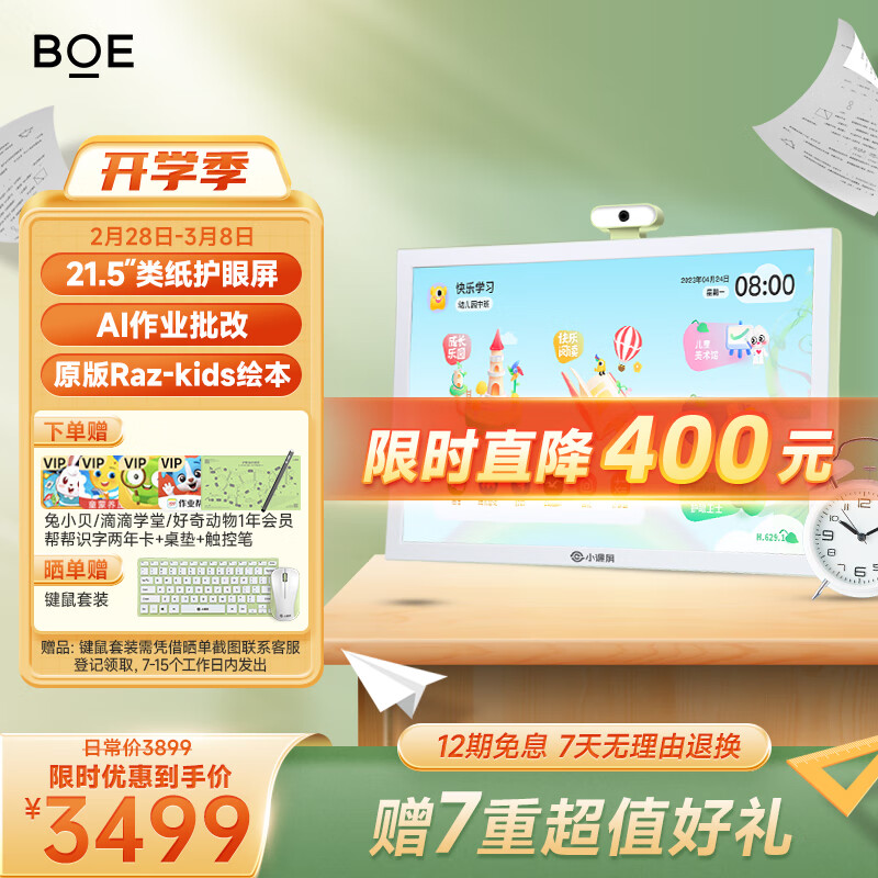 BOE京东方小课屏E3灵动版128G学生学习平板21.5英寸类纸护眼儿童学习机 小学初高中同步早教机家教机价格:3899.00元!