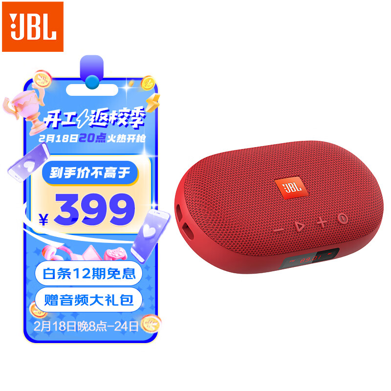 JBL TUNE3 多功能插卡蓝牙音箱 便携式户外音响 FM收音机TF卡 学生学习老人娱乐SD18升级款 红色价格:429.00元!