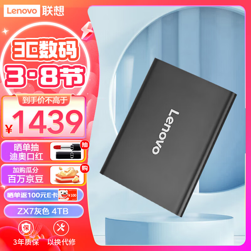 联想(Lenovo)4TB 移动固态硬盘(PSSD)Type-c USB3.1接口 手机直连 ZX7系列 灰色价格:1439.00元!