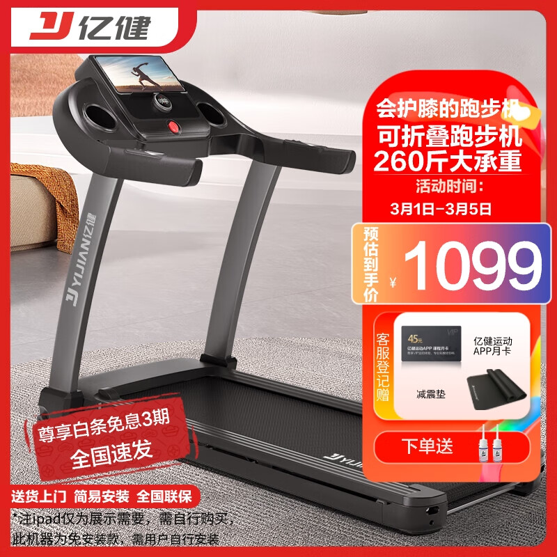 亿健(YIJIAN)跑步机家庭用降噪可折叠健身器材室内简易安装ELX走步机价格:1099.00元!