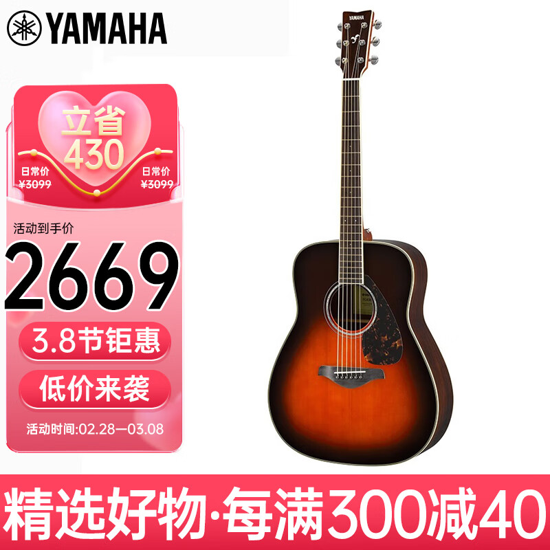 雅马哈(YAMAHA)FG830TBS 原声款 实木单板初学者民谣吉他圆角吉它41英寸棕色渐变价格:3099.00元!