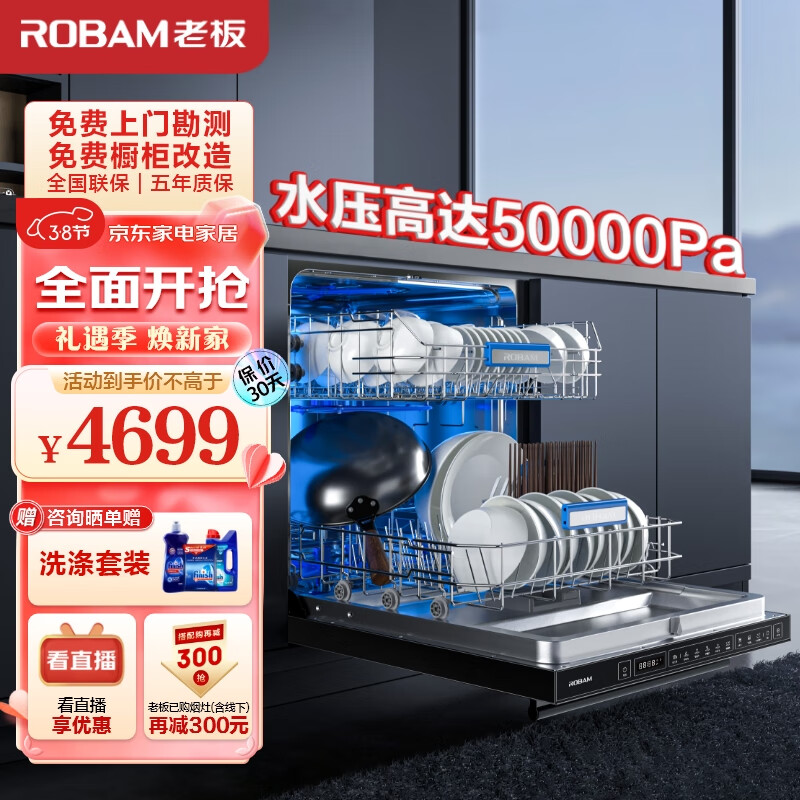 老板(Robam)WB793D洗碗机13套大容量嵌入式去重油污热风烘干消毒存储一体机家用中式搁架洗锅一级水效分层洗价格:4699.00元!