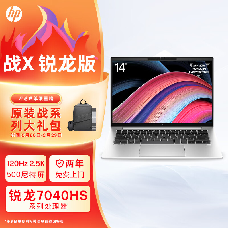 惠普(HP)战X Zen4锐龙14英寸轻薄笔记本电脑(R7-PRO 7840HS 32G 1T 2.5K 500尼特 2年上门 AI 高性能)5G版价格:6499.00元!