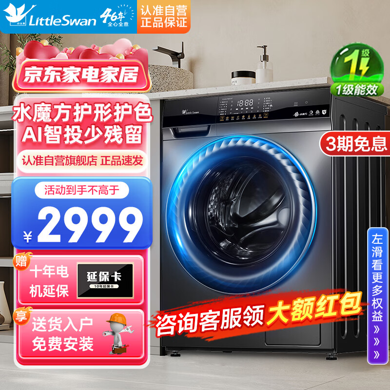 小天鹅水魔方全自动智能投放巡航除菌螨 超薄机身触控屏10公斤单洗滚筒洗衣机TG100VT616WIADY-T1B升级款价格:2699.00元!