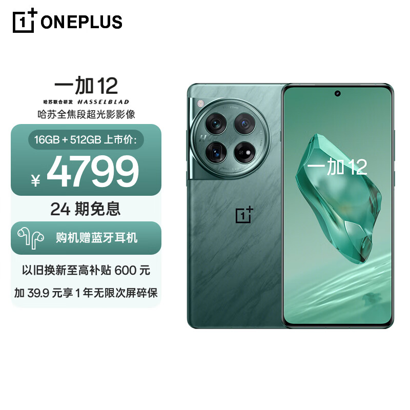 一加 12 16GB+512GB 苍绿 哈苏全焦段超光影影像 第三代骁龙8旗舰芯片 OPPO AI 5G无线充游戏拍照手机价格:4799.00元!