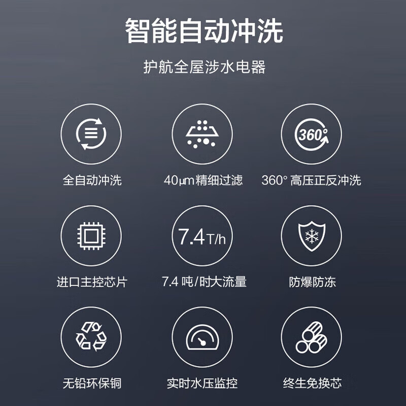 京东京造 前置过滤器 智能自动冲洗顶配 7.4T/h大流量升级 40微米精滤水压监测 全屋家用净水器 免费安装价格:498.00元!