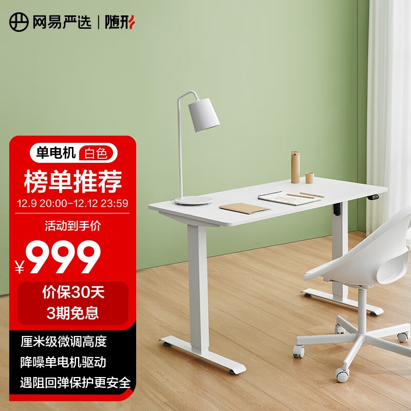 网易严选 电动升降电脑桌 工作站立式升降台 电脑升降支架 白色1200*600mm价格:1499.00元!