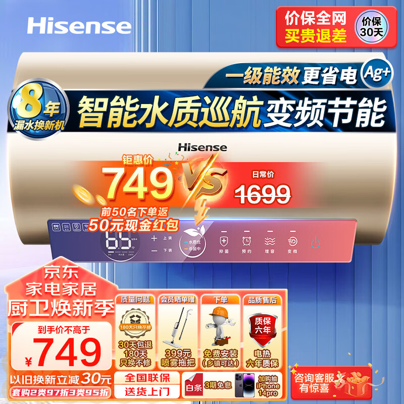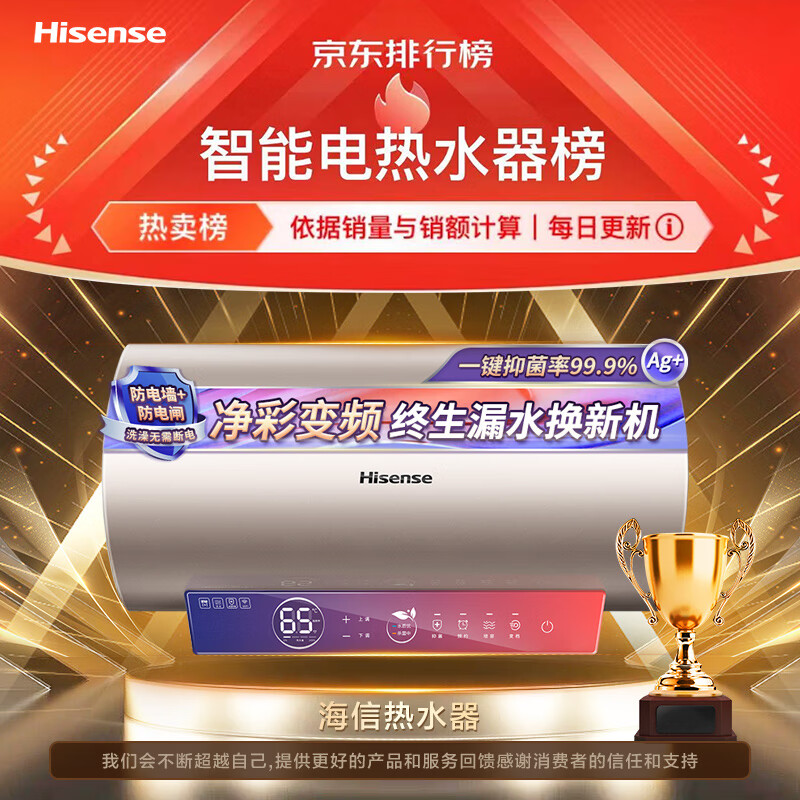 海信(Hisense)60升家用电热水器 变频速热一级能效 5倍增容 WIFI水质监测 双重保护ES60-C501i智享 以旧换新价格:899.00元!