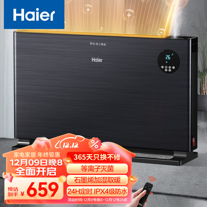 海尔(Haier) 石墨烯取暖器欧式快热炉对流家用电暖器电热暖气片遥控定时加湿电暖气 遥控加湿款HKS2206HX价格:699.00元!