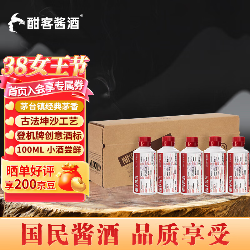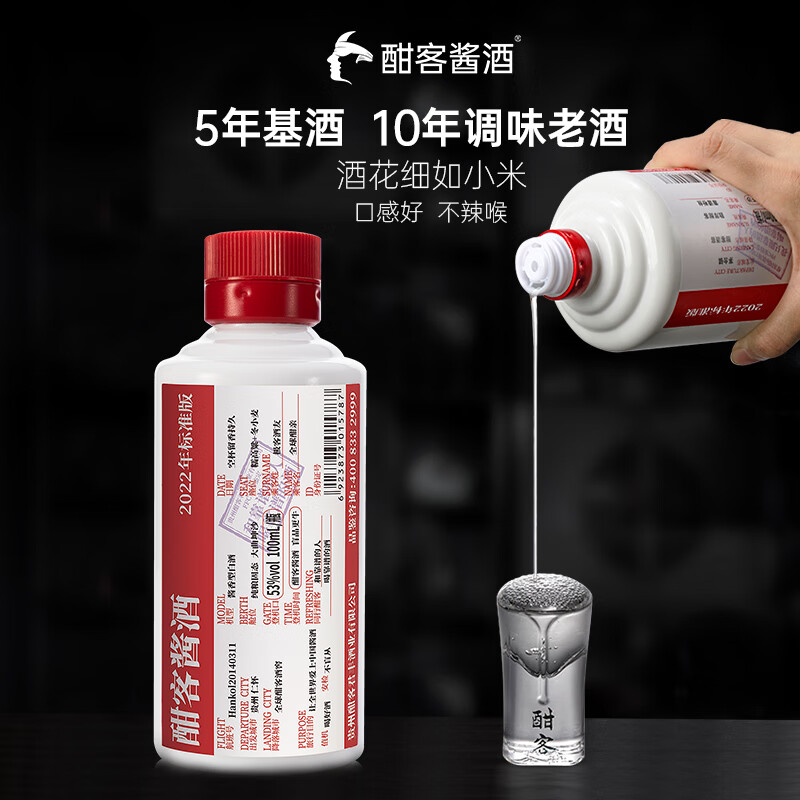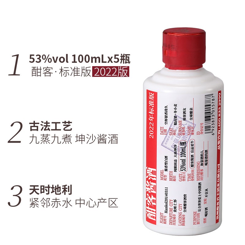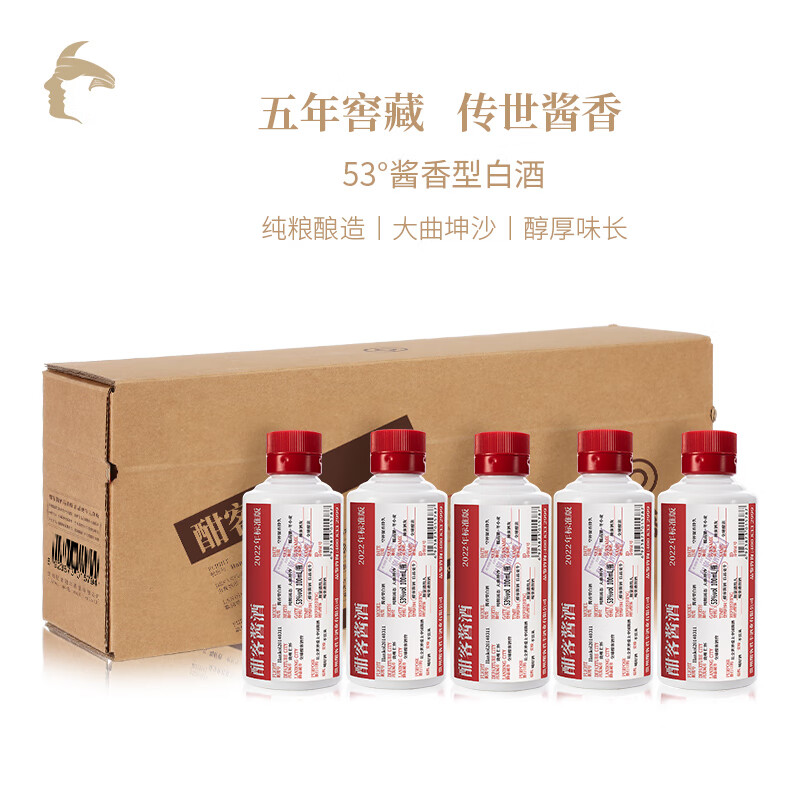 酣客 2022年标准版 酱香型白酒53度大曲 过年送礼 100ml*5瓶 礼盒装价格:440.00元!