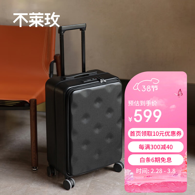 不莱玫多功能前开盖行李箱女小型侧开拉杆箱20英寸商务登机箱男 黑色价格:799.00元!