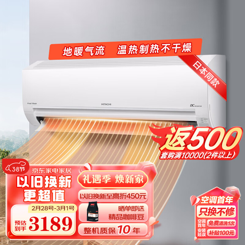 日立(HITACHI)白熊君 新3级能效 1.5匹全直流变频冷暖空调挂机 低耗节能冻结洗净 以旧换新RAK/C-PE12PHBPC价格:3189.00元!