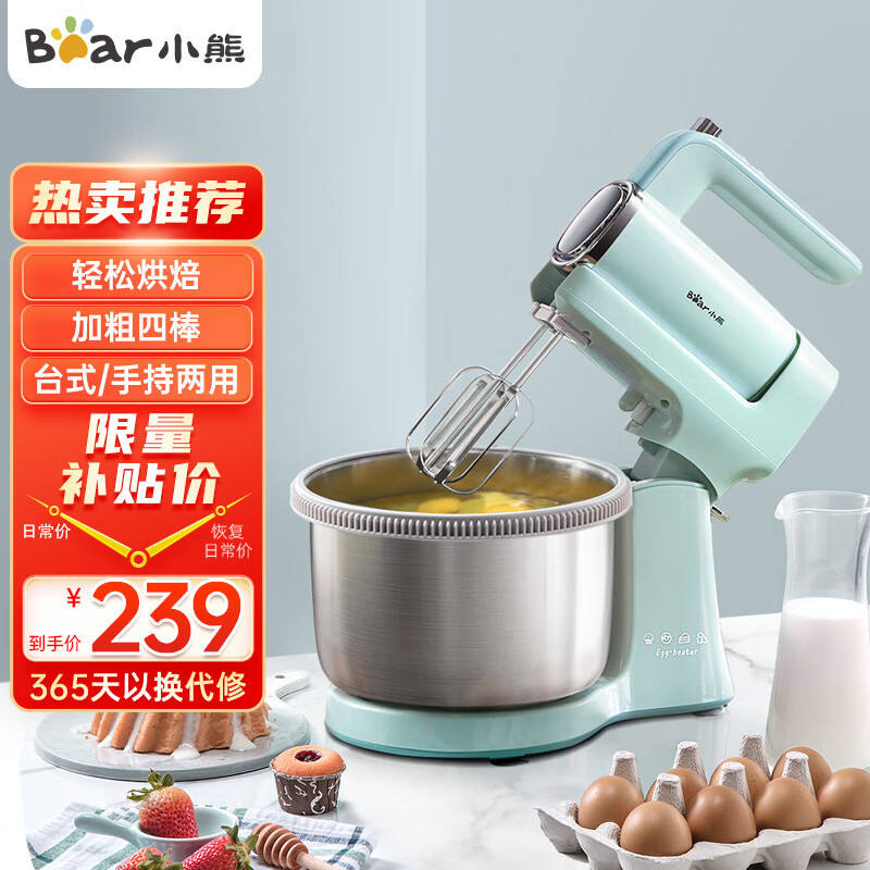 小熊(Bear)打蛋器 家用电动打蛋机 奶油奶盖打发器 烘焙手持自动搅蛋器 搅拌器DDQ-B03V1价格:239.00元!