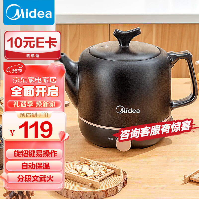 美的(Midea)煎药壶中药锅中药壶3L大容量熬药罐智能全自动陶瓷电砂家用养生锅一体免看管药膳煲煎药壶JYE3001价格:119.00元!