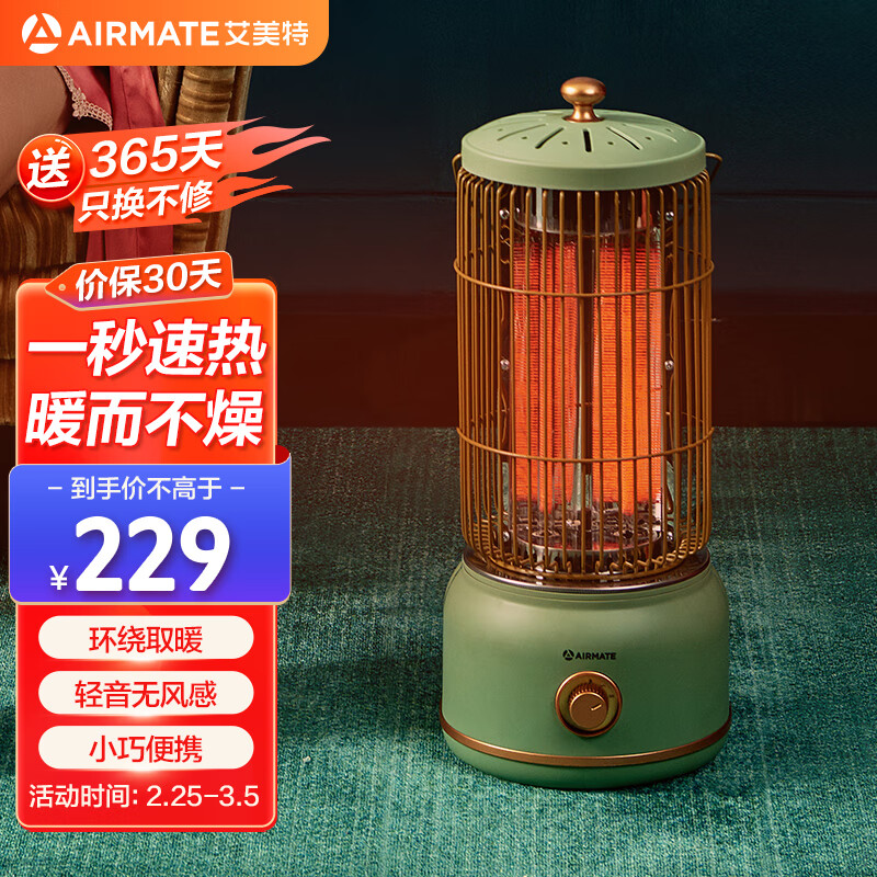 艾美特(AIRMATE)取暖器/电暖器家用/小太阳/复古马灯/鸟笼子电暖气/电热炉 轻音节能速热小太阳烤火炉 WR8-X4-1价格:179.00元!