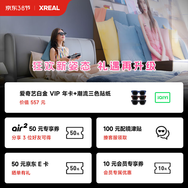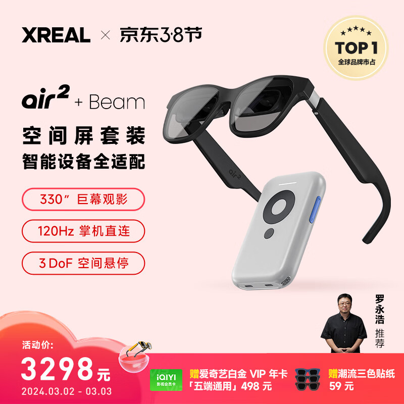 XREAL Air 2 智能AR眼镜 330英寸巨幕 3DoF空间悬停 非VR眼镜 Beam全适配套装 同vision pro投屏体验价格:3598.00元!