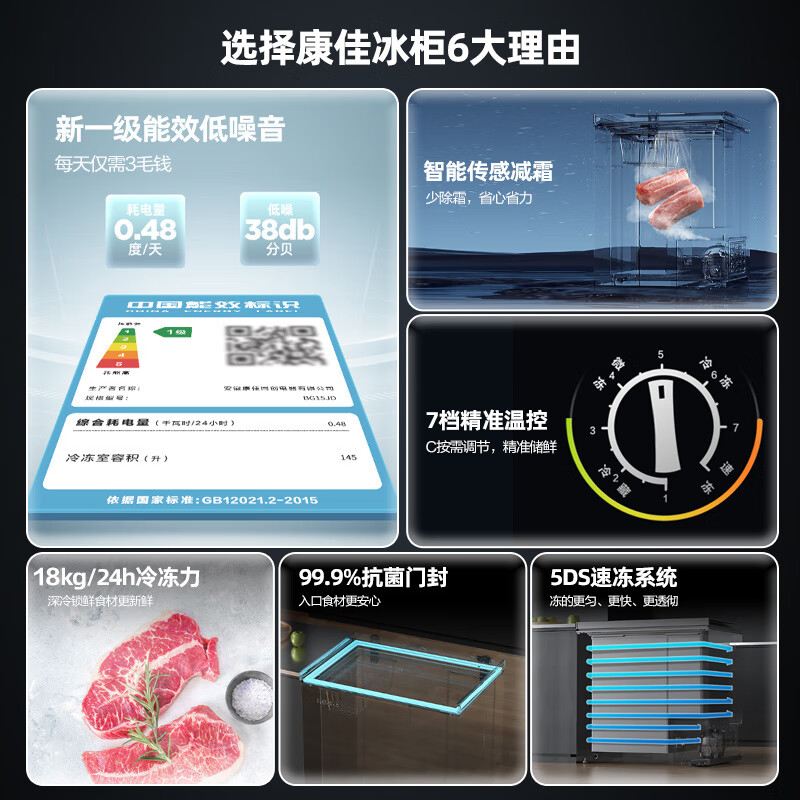 康佳145升低霜小冰柜一级能效家用商用 冷藏柜冷冻柜顶开卧式两用冷柜小型租房用母婴母乳小冰箱BG15JD价格:698.00元!