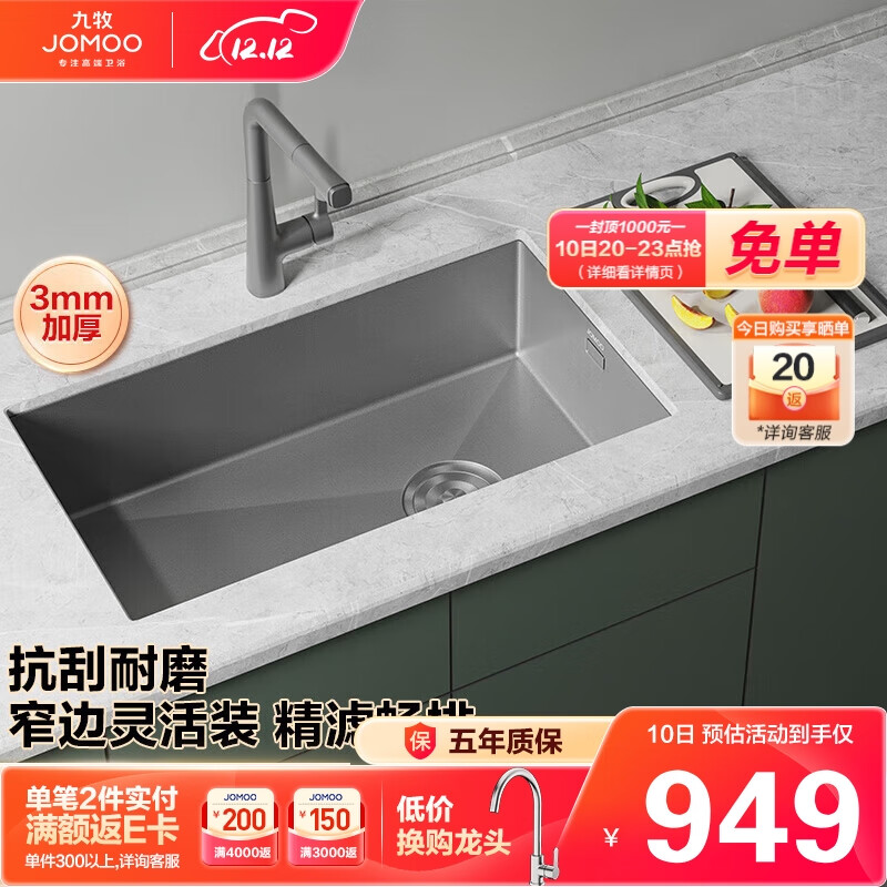 九牧(JOMOO)不锈钢手工枪灰水槽厨房洗菜盆单槽68*45(不含龙头) 06251-AZ-1价格:1099.00元!