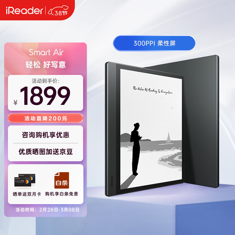 掌阅iReader Smart Air 8英寸电子书阅读器 墨水屏电纸书电子笔记本智能办公本 300PPI超清显示 幽峻黑价格:1899.00元!
