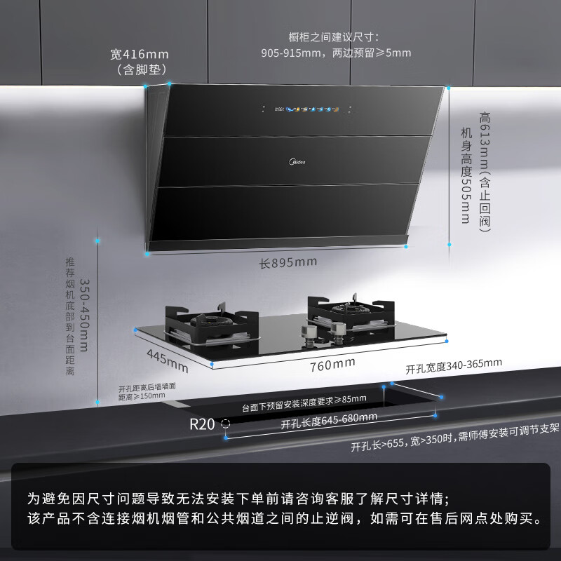 烟机安装尺寸:900±50mm