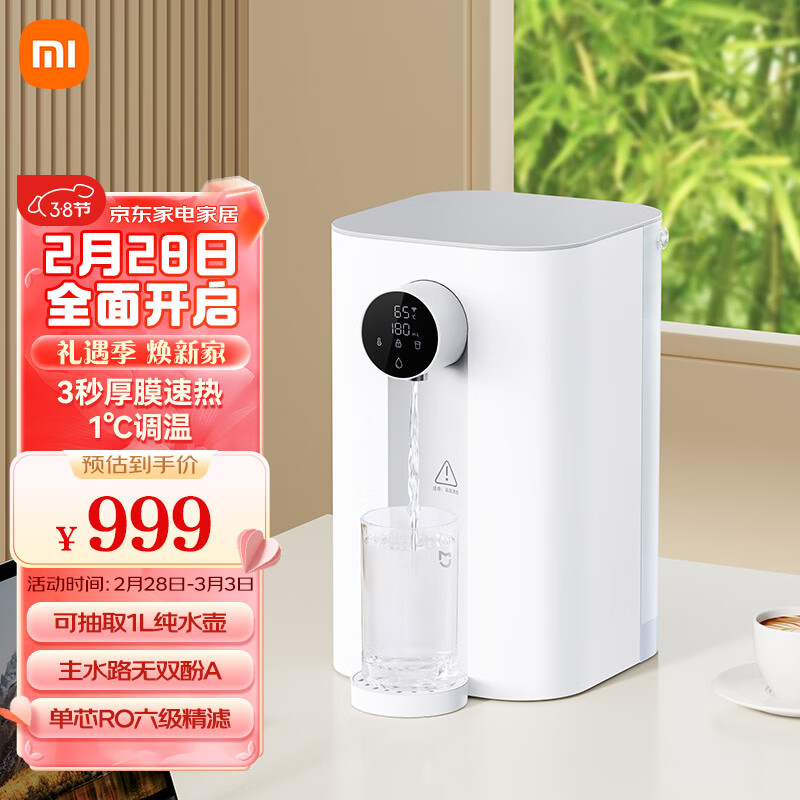 米家小米(MI)台式净饮机乐享版 家用RO反渗透即热净水机 净饮一体机小型免安装 3秒即热直饮水机价格:999.00元!