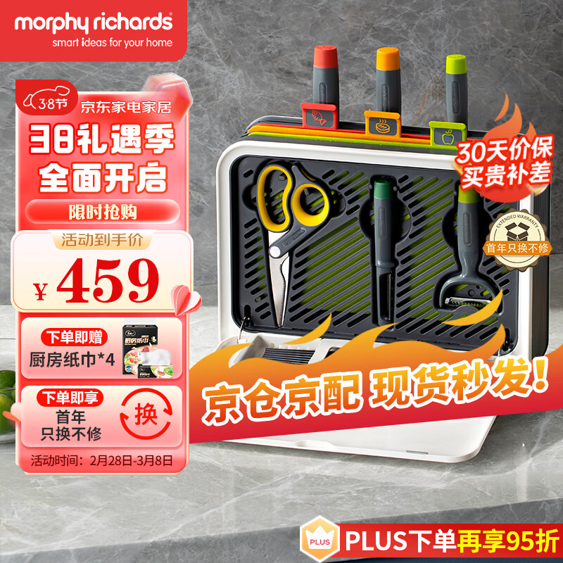 摩飞电器(Morphyrichards)刀筷砧板消毒机 家用可拆卸清洗刀具筷子筒紫外线消毒烘干器 年货送礼分类厨具套装MR1002价格:459.00元!