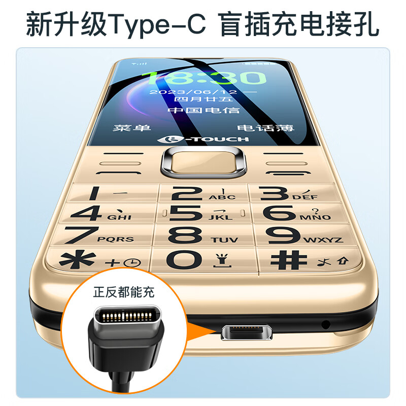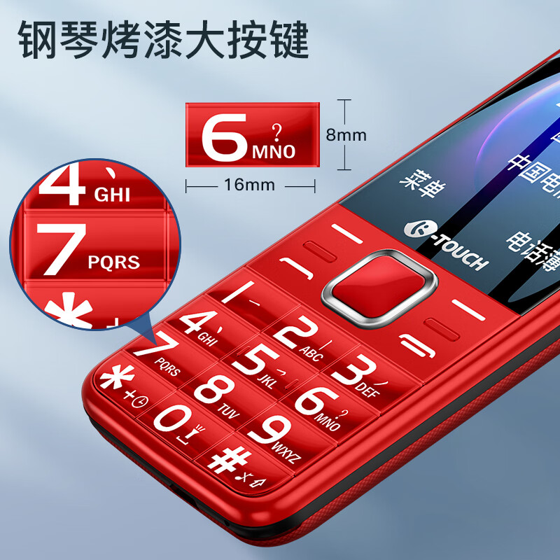 天语(K-Touch)E2 通4G 老人手机直板按键超长待机大字功能备用电信联通移动老年人手机 魅力红价格:109.00元!