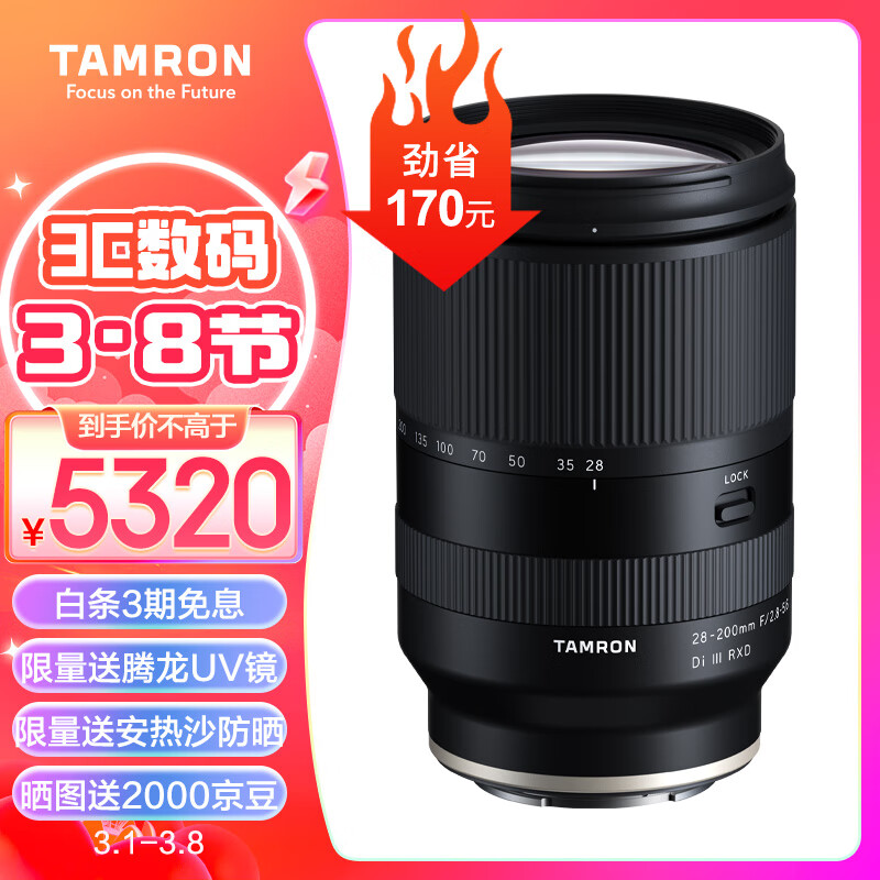 腾龙(Tamron)A071S 28-200mm F/2.8-5.6 Di III RXD大光圈远摄大变焦镜头 索尼全画幅微单镜头(索尼全幅E口)价格:5320.00元!