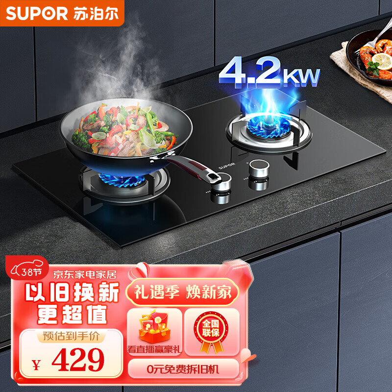 苏泊尔(SUPOR)燃气灶天然气灶 双眼灶大火力4.2kW旋火 家用台式嵌入式两用灶 黑晶面板钢化玻璃 DB07天然气价格:429.00元!