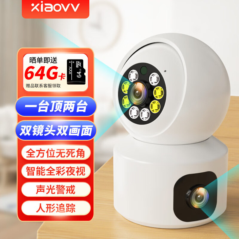 xiaovv智能云台双镜头监控器360度带夜视全景自动旋转可对话家用室内手机远程语音无线摄像头家庭高清价格:149.00元!