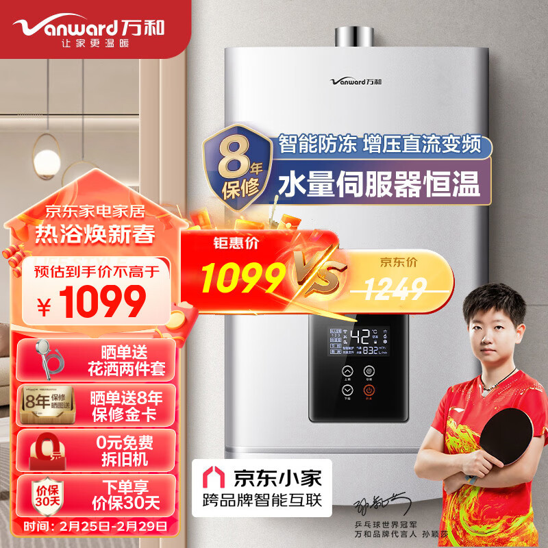 万和(Vanward)13升燃气热水器京东小家智能生态天然气智能防冻 直流变频 增压水量伺服器恒温 JSQ25-560J13价格:1249.00元!