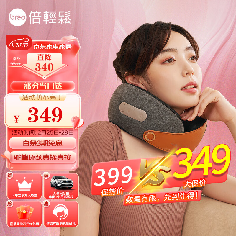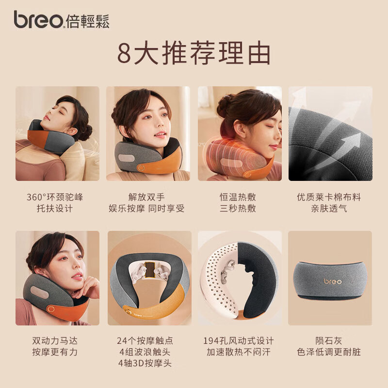 倍轻松(breo)颈椎按摩器Neck C2 颈部肩颈按摩仪家用枕便携环颈U型枕热敷揉捏 38三八妇女节女神节礼物礼品价格:439.00元!