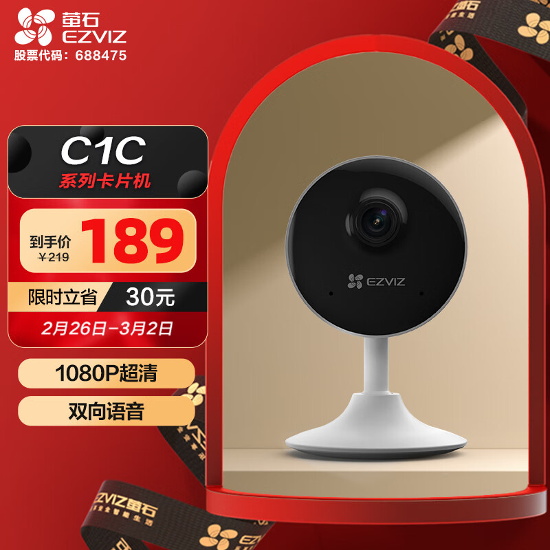 萤石(EZVIZ)C1C 1080P摄像头200W无线家用智能网络摄像机wifi远程安防监控摄像头12米夜视婴儿看护器价格:189.00元!