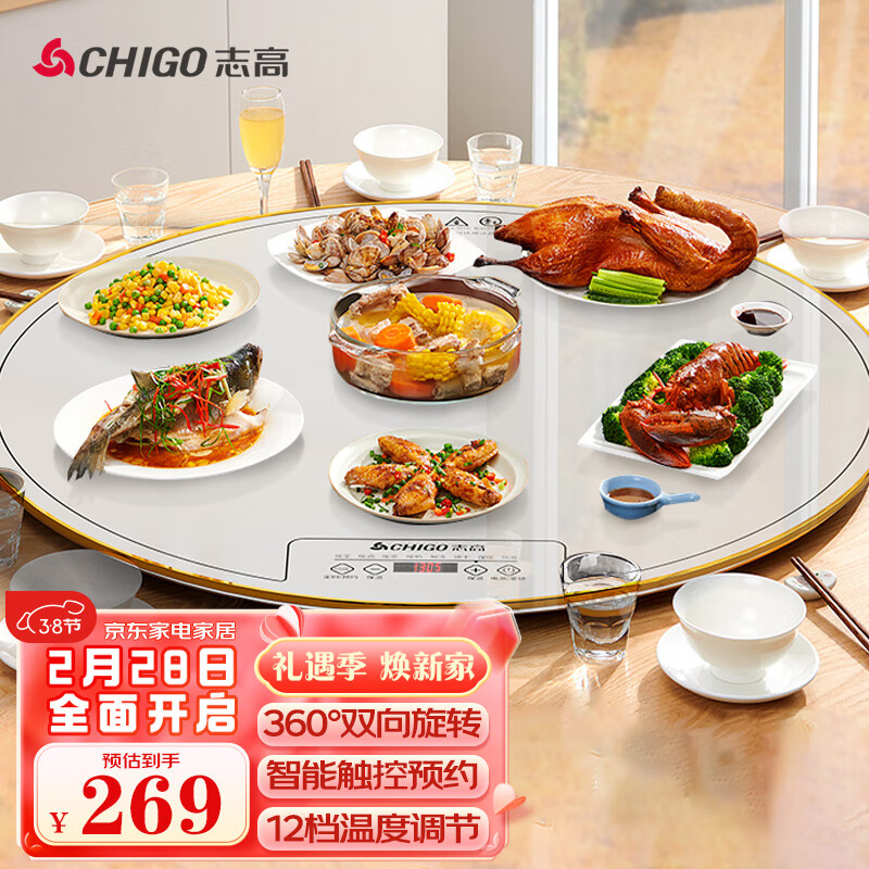 志高(CHIGO)暖菜板 饭菜保温板热菜板 加热桌垫菜板 可旋转 智能预约 八大功能60CM圆形 ZG-QF60ZB白价格:269.00元!