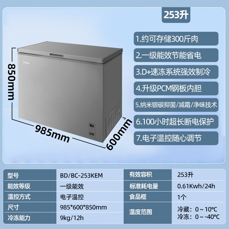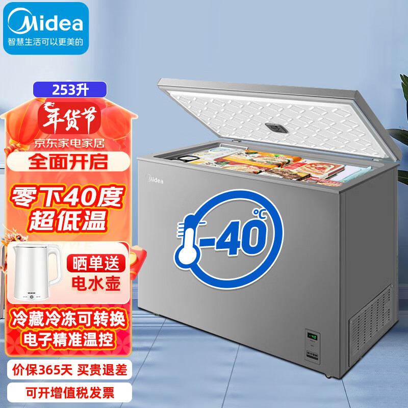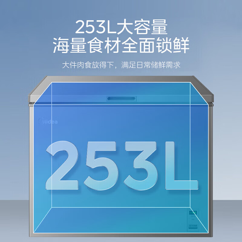美的(Midea)冰柜家用253升大容量 冷藏冷冻单温转换冷柜 顶开门净味减霜速冻保鲜小型雪柜BD/BC-253KEM价格:1499.00元!